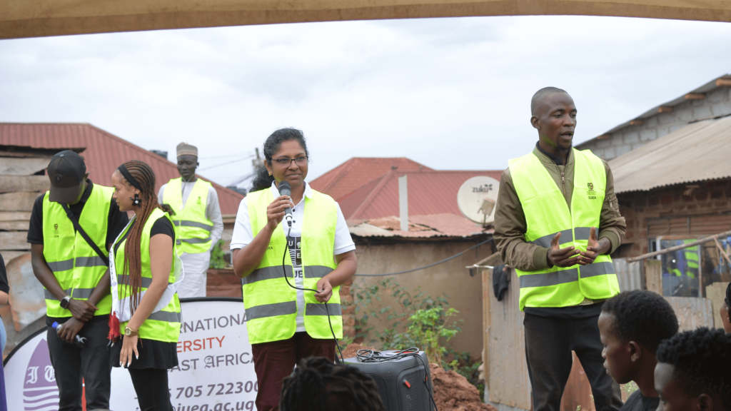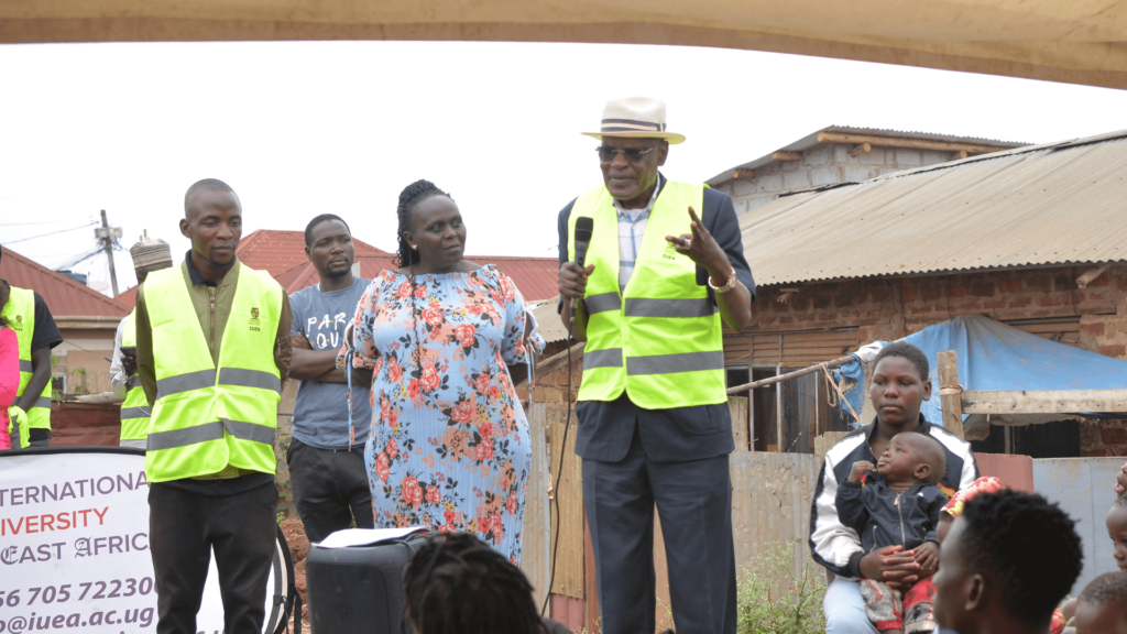 Leading the charge were some of IUEA’s most respected figures: Ambassador Moses Kiwe Sebunya, our Board of Trustees Chairman, Prof. Emeka Akaezuwa, the Vice-Chancellor, Dr. Lakshmi Bhabuu, the Deputy Vice-Chancellor, Ms. Sheila Ombogo, our Head of Marketing, and, of course, the IUEA Queens. Ambassador Moses Kiwe Sebunya underscored how deeply the spirit of giving back resonates with our university’s founders. The heartfelt welcome from Ms. Mbaja Christine, the local council chairperson, further emphasised the profound significance this act of unity held for her.