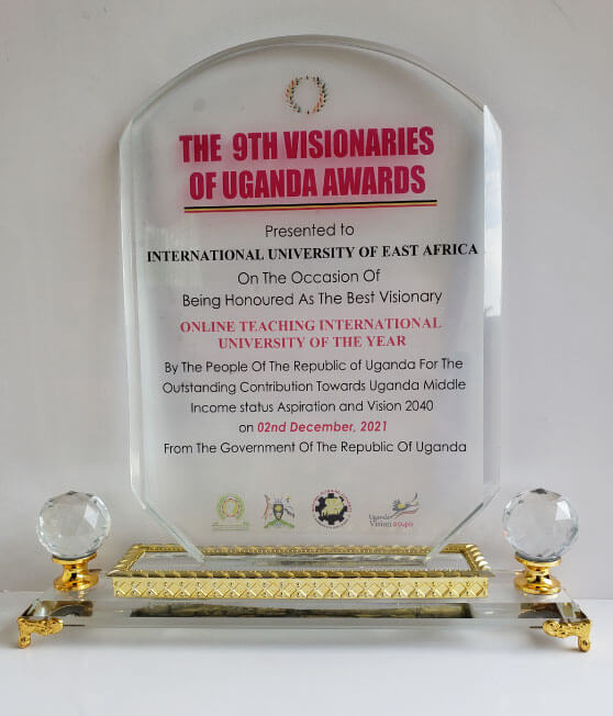 IUEA was awarded as best visionary for online teaching international university of the year by the republic of Uganda. This was during the 9th visionaries of Uganda Awards ceremony held at Serena Hotel Kampala last week on Wednesday, 2nd December 2021.