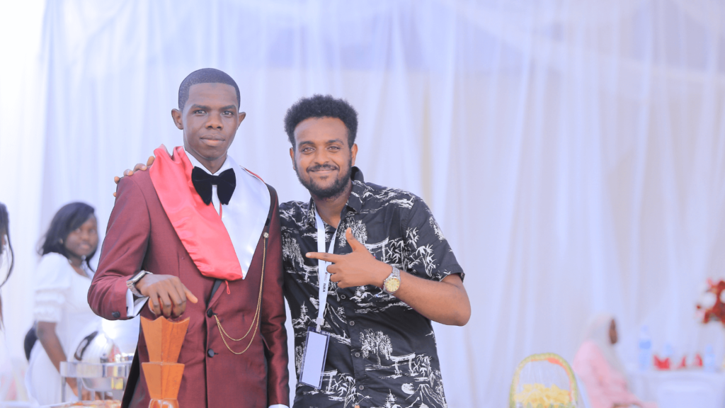 IUEA graduate Karume Abdulfattah is congratulated by staff member Filmon Asmerom during a joyous moment at IUEA’s 11th Graduation Ceremony.