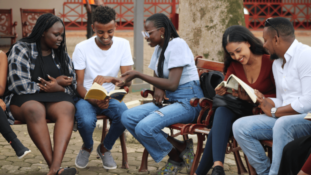Students immerse themselves in collaborative learning at IUEA’s serene university gardens, supporting and inspiring each other.