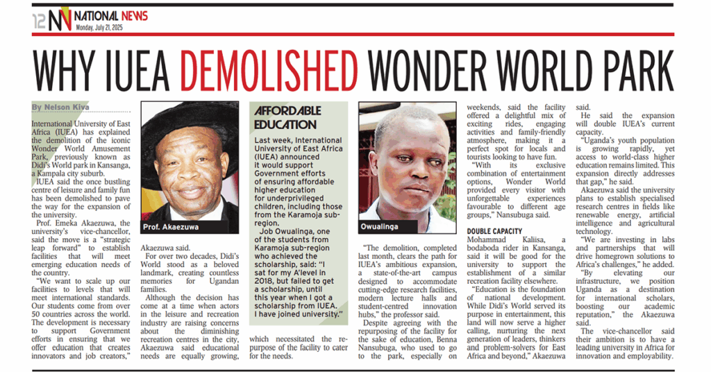 Read the original feature in New Vision: Why IUEA Demolished Wonder World Park
